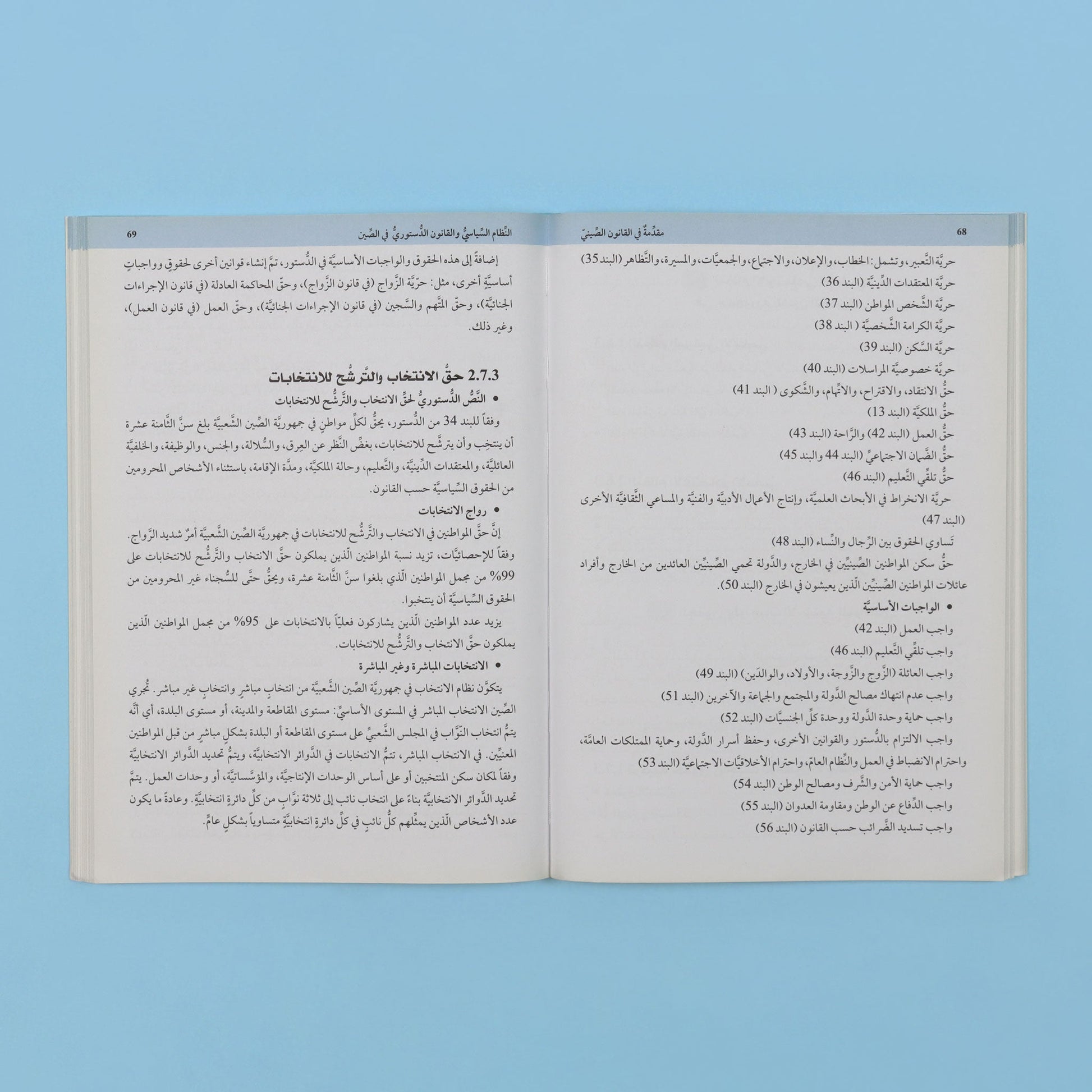 الصين دولة ذات تاريخ طويل يعود إلى نحو 500,000 سنة، شهدت خلاله ظهور العديد من القوانين والشّرائع القانونيّة الّتي نشأت لغايات عديدة، منها: ضبط الأمن، وترسيخ دعائم الدّولة القويّة، وتحقيق العدل بين جميع المواطنين، مروراً بظهور الأنظمة السّياسيّة والقوانين الدّستوريّة المتطوّرة مع تأسيس جمهورية الصِّين الشّعبيّة عام 1949م، والّتي حدّدت حقوق وواجبات المواطنين.