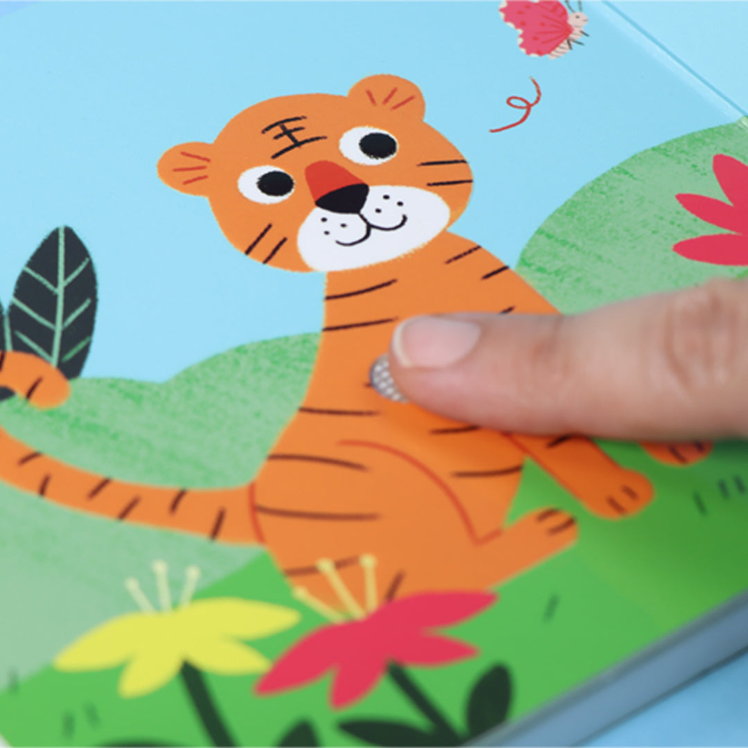 اصطحب طفلك برحلة للتعرف ببعض حيوانات الغابة وأصواتها، من خلال الضغط على الدوائر الصوتية.